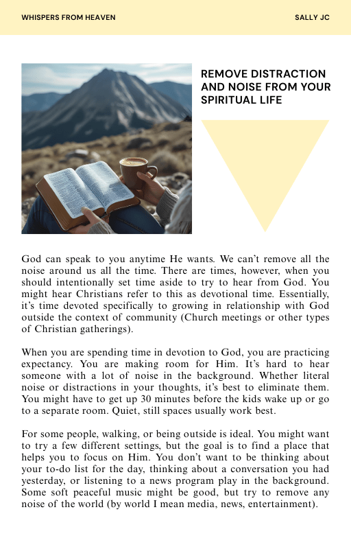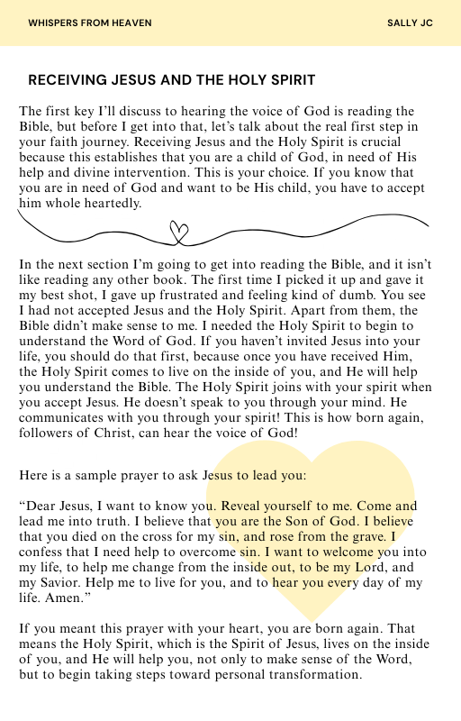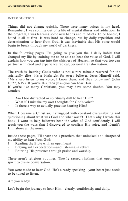 Whispers from Heaven Chapters 1-2 Posted bysallyjc333July 11, 2025July 19, 2025Posted inBlog, Sally JC CoachingTags:#spiritualgrowth #faithjourney, christianity, God, Holy Spirit, Jesus Share this: Share on X (Opens in new window) X Share on Facebook (Opens in new window) Facebook More Share on LinkedIn (Opens in new window) LinkedIn Like Loading... Related Published by sallyjc333 Just living the dream in SW FL, chasing God, and capturing my favorite moments along the way. View more posts